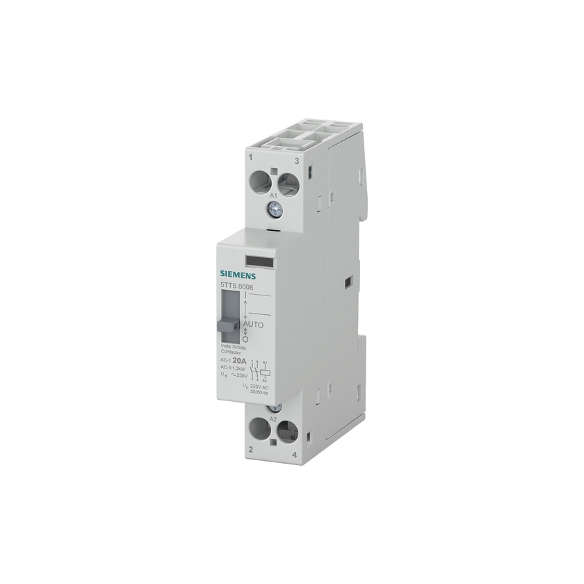 Siemens LV SENTRON 5TT5 Insta Contactor with 2xNO 20 A/ 400 VAC, Control voltage 230 VAC, for the switching of heaters, lighting or motors