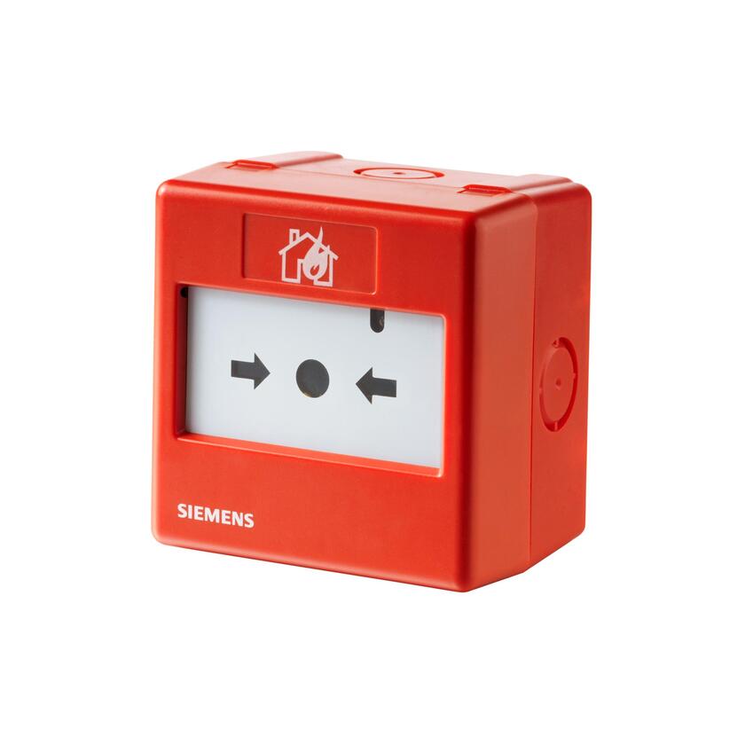 Siemens Cerberus Manual resetable call point for actuation of fire alarm by pushing on the plastic insert and pressing the pushbutton, FDnet/C-NET