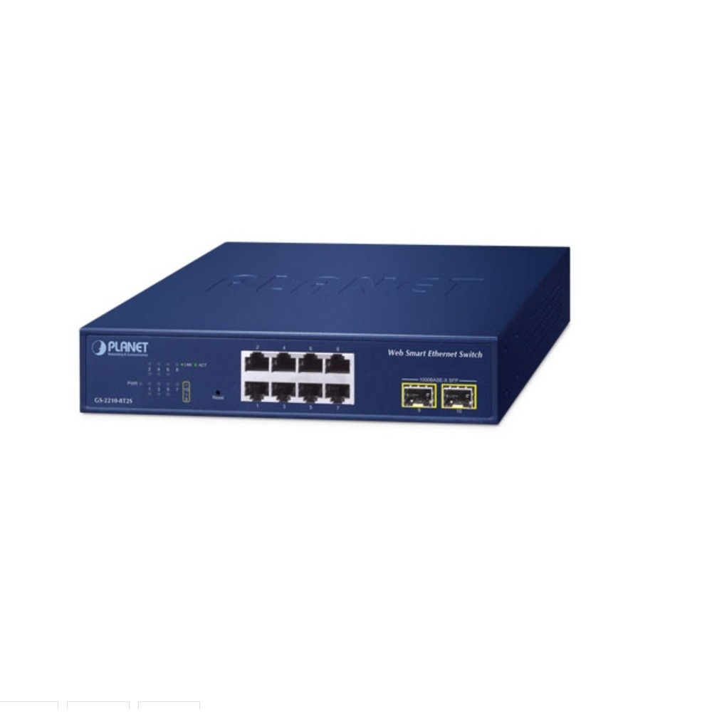 GS-2210-8T2S 8-Port 10/100/1000T + 2-Port 1000X SFP Web/Smart Managed Ethernet Switch, 19″ Rack Mountable
