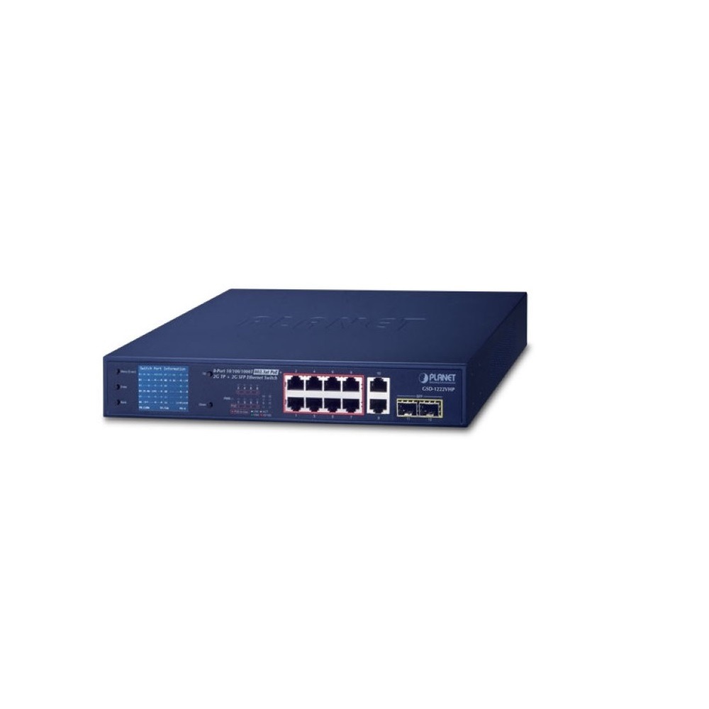 GSD-1222VHP 8-Port 10/100/1000T 802.3at PoE + 2-Port 10/100/1000T + 2-Port 1000X SFP Unmanaged Gigabit Ethernet Switch, PoE LCD Monitor