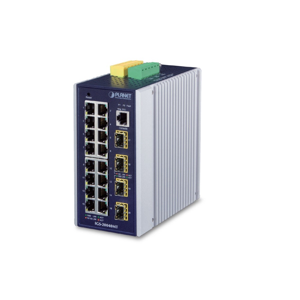 IGS-20040MT 16-Port 10/100/1000T + 4-Port 100/1000X SFP Industrial L2+ Ring Managed Gigabit Ethernet Switch, Planet