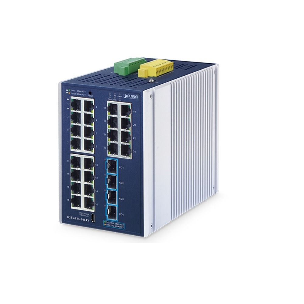 IGS-4215-24T4X 24-Port 10/100/1000T + 4-Port 10G SFP+ Industrial L2+ Ring Managed Gigabit Ethernet Switch, Planet