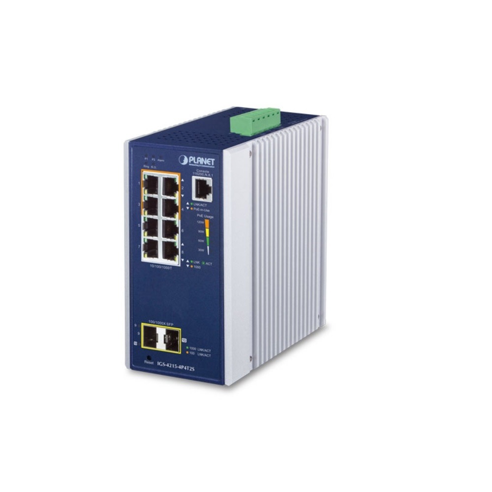 IGS-4215-4P4T2S 4-Port 10/100/1000T 802.3at PoE + 4-Port 10/100/1000T + 2-Port 100/1000X SFP Industrial L2/L4 Managed Gigabit Ethernet PoE Switch, Planet