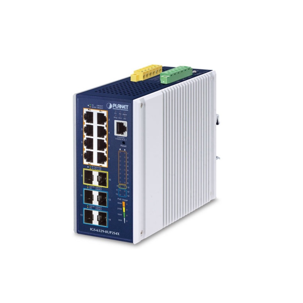 IGS-6329-8UP2S4X 8-Port 10/100/1000T 802.3bt PoE + 2-Port 1G/2.5G SFP + 4-Port 10G SFP+ Industrial L3 Ring Managed Gigabit Ethernet PoE Switch, Planet