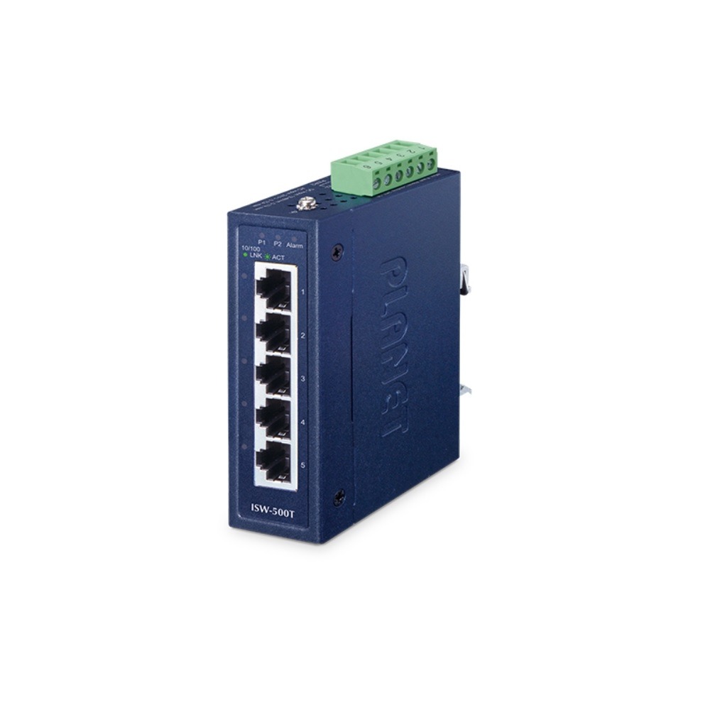 ISW-500T 5-Port 10/100TX Industrial Compact Unmanaged Fast Ethernet Switch, Planet
