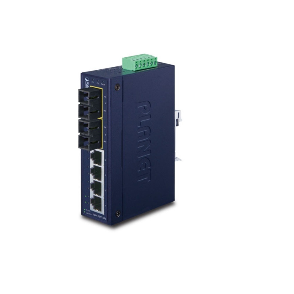 ISW-621TS15 4-Port 10/100Base-TX + 2-Port 100Base-FX Single-mode Industrial Unmanaged Fast Ethernet Switch, Planet