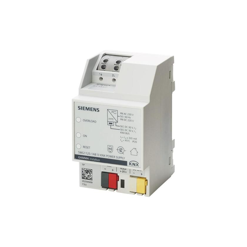 Siemens power supply for KNX 24 VDC/ 320 mA. Rail-mounted device 4 MW.