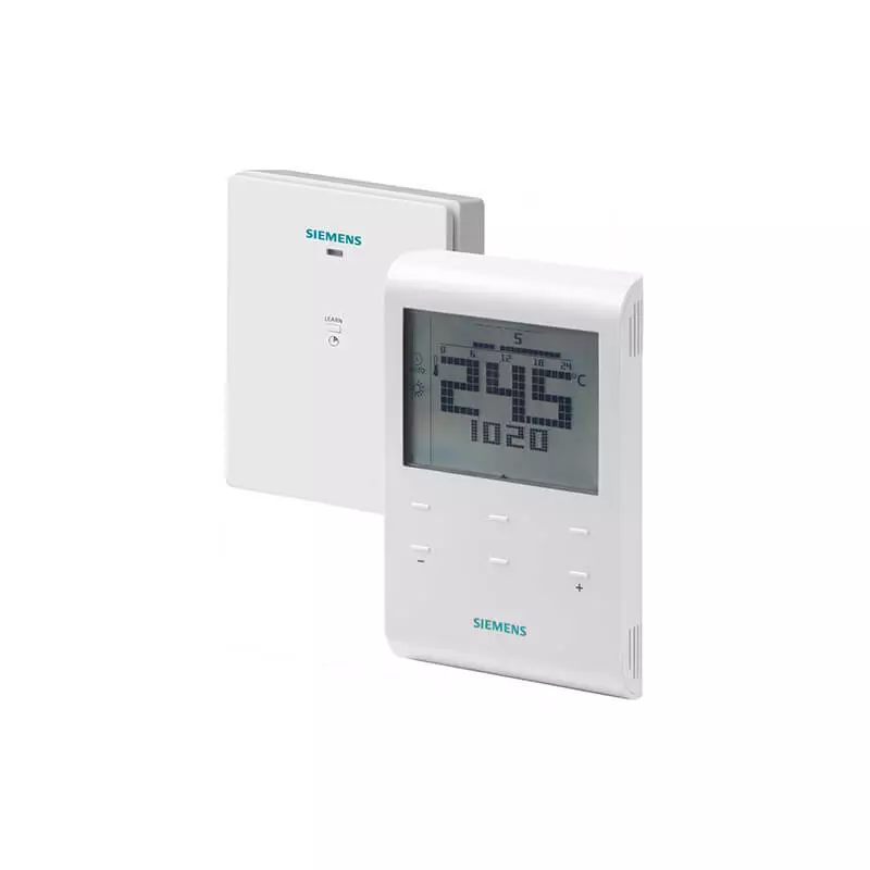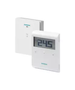 The RDE100.1RFS Wireless heating room Thermostat with timer, LCD display. Thermostat with battery power supply, receiver 230VAC. Comfort, Economy, Auto timer and Protection mode, Auto time switch. Receiver included