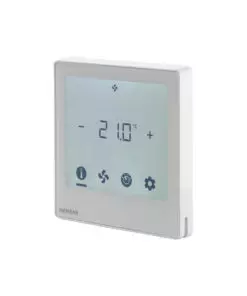 The RDF400BN Siemens room Thermostat for 2/4 pipe Fan-Coil with LCD, 3-speed fan, on /off valve control, two universal inputs, RS485 Modbus and BACnet MS/TP communication, for square installation box