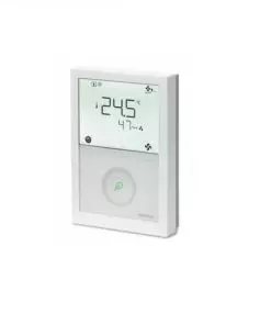 The RDG260KN Fan-Coil Thermostat, 3 speed /EC fan, 0 – 10 V outputs, temperature and humidity sensor, KNX, 24 VAC/VDC, white