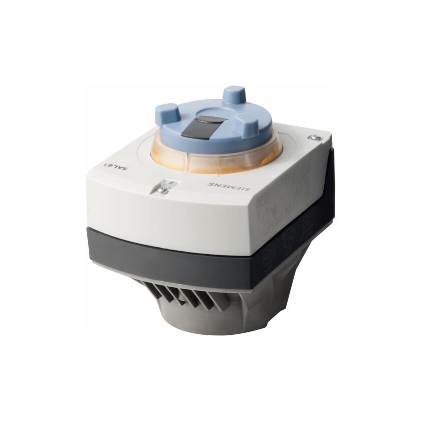 Siemens SAL61.00T10 rotary ball valve actuator with 10 Nm torque and 0-10 V control, positioning time 120 sec, power supply 24 VAC. Manual control, position can be fixed. Compatible with Siemens butterfly and slipper valves, for HVAC control systems