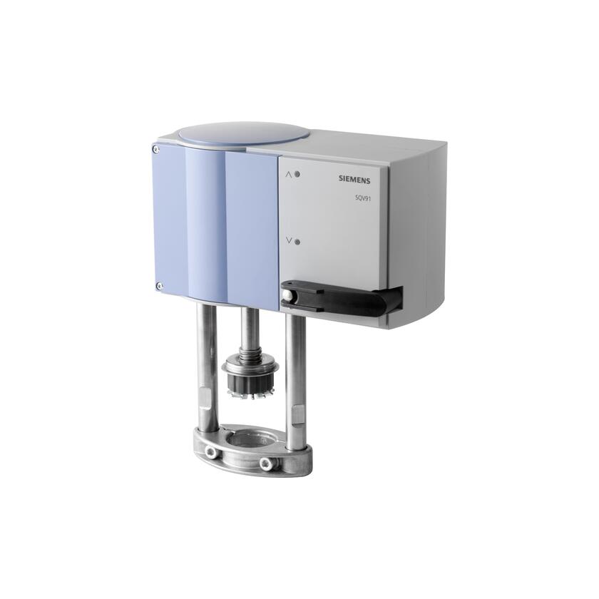Siemens SQV91P30 electromotoric valve actuator for accurate control with 1100 N force, 0-10 V control signal, 40 mm stroke and 24 VAC power supply, for reliable control of regulating valves in HVAC systems, district heating and refrigeration plants