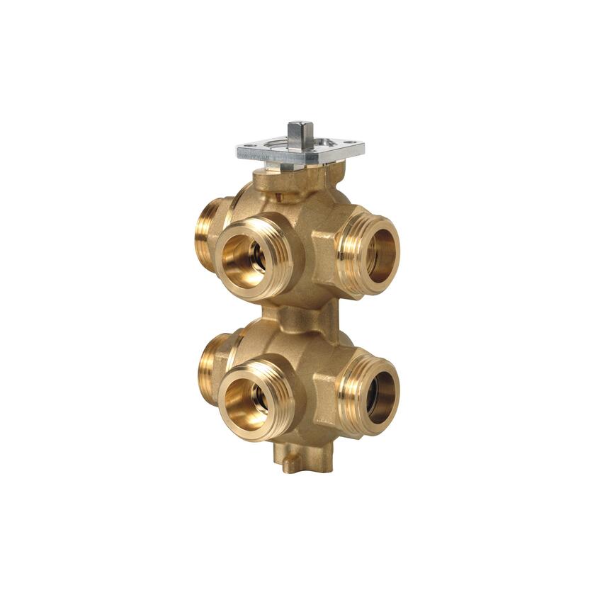 Siemens VWG41.10-0.4-0.65 is a six-port control ball valve (DN10, G 1/2″) for reliable operation in heating, ventilation, and air conditioning systems (HVAC). It delivers dual flow coefficients kvs A = 0.4 m3/h and kvs B = 0.65 m3/h, for systems using heated or chilled water (with antifreeze) where precise flow regulation and tight shut-off are essential